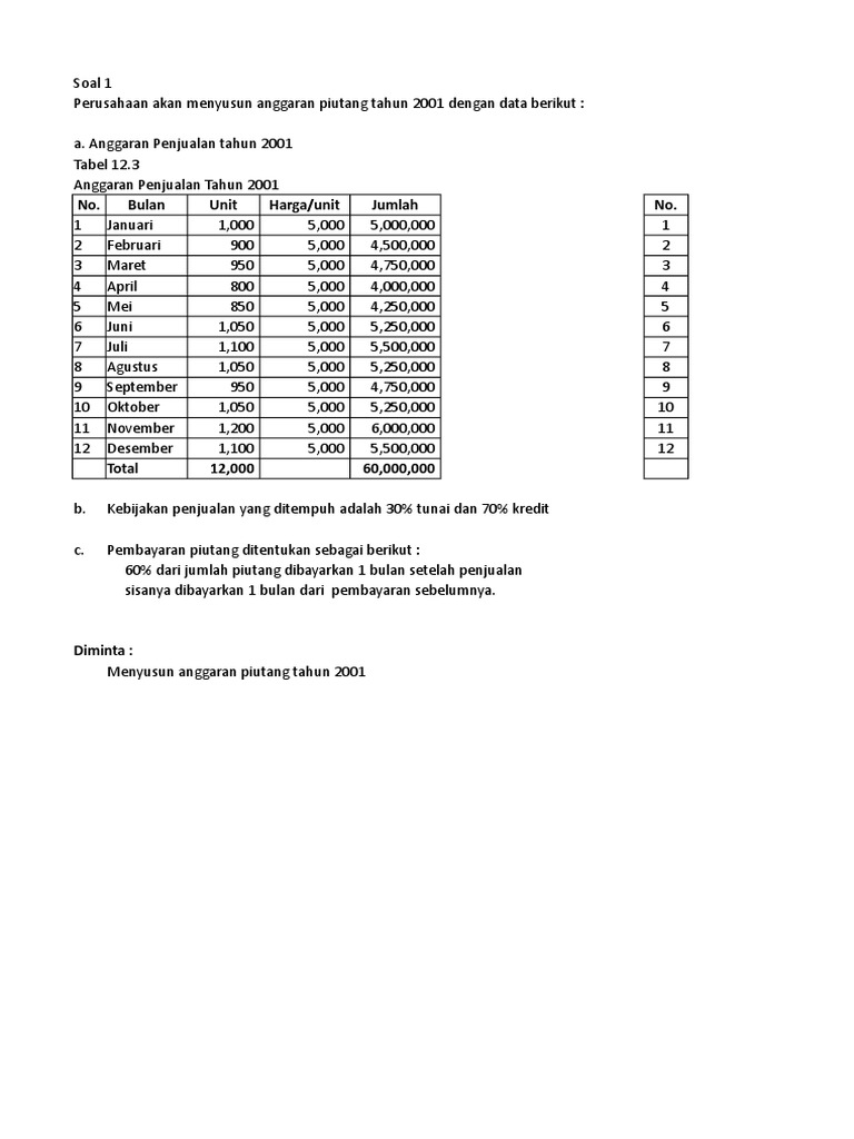 Contoh Soal Dan Jawaban Anggaran Pengumpulan Piutang Cute766