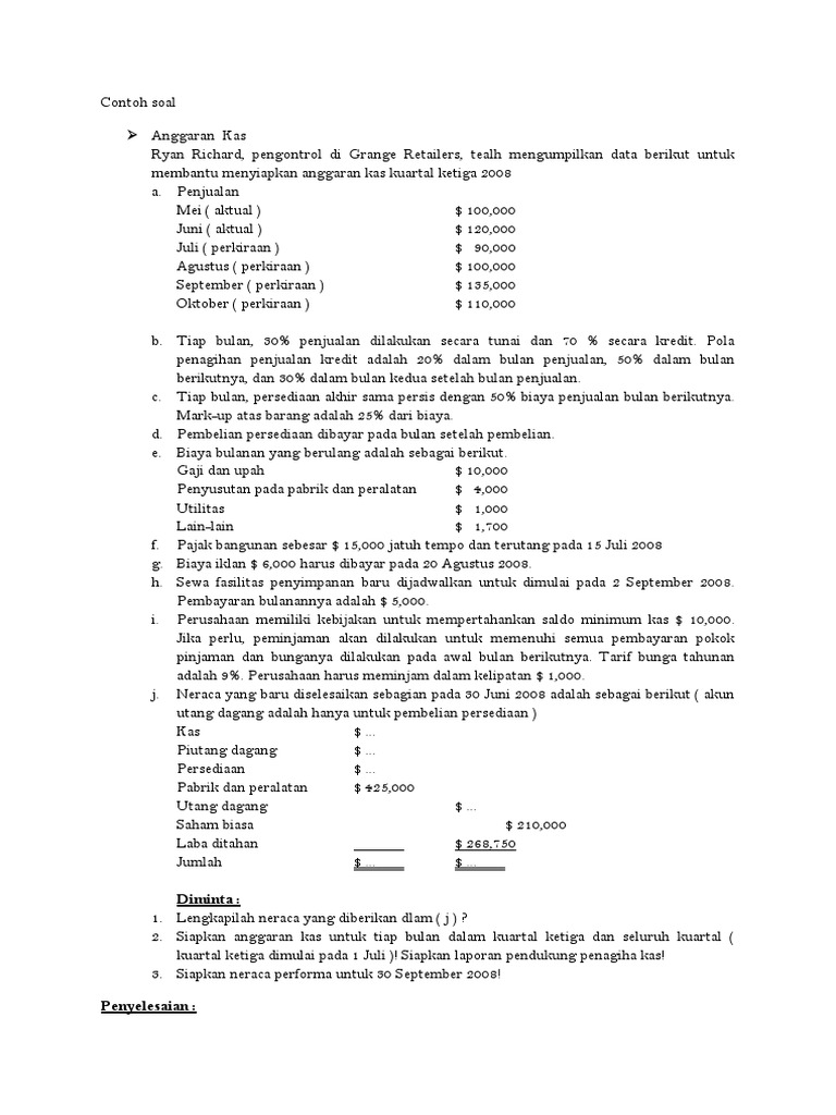 Contoh Soal Anggaran Piutang Utang Dan Kas Contoh Soal Terbaru