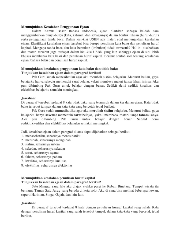 Contoh Soal Menunjukkan Kesalahan Penggunaan Ejaan Atau Tanda Baca Cute766