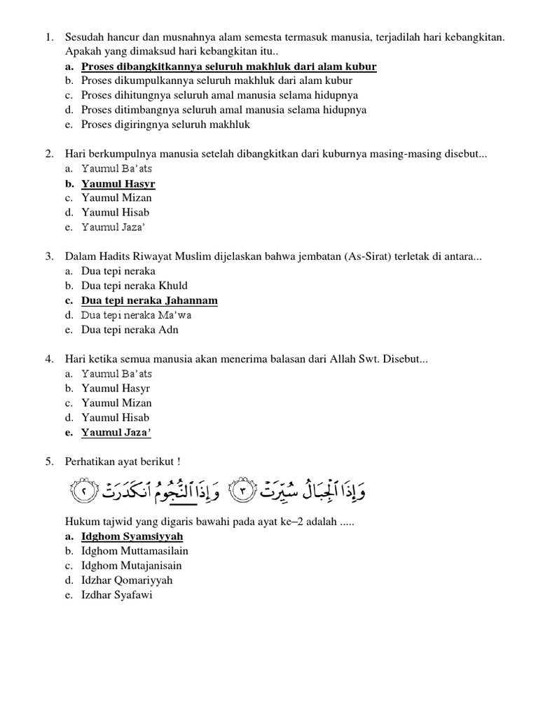 Soal Agama Kel 1 Meyakini Hari Akhir